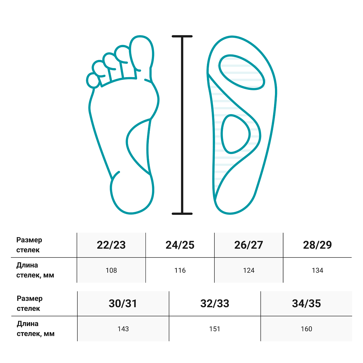 - плоская опорная поверхность стельки обеспечивает надёжную опору и равновесие при ходьбе.